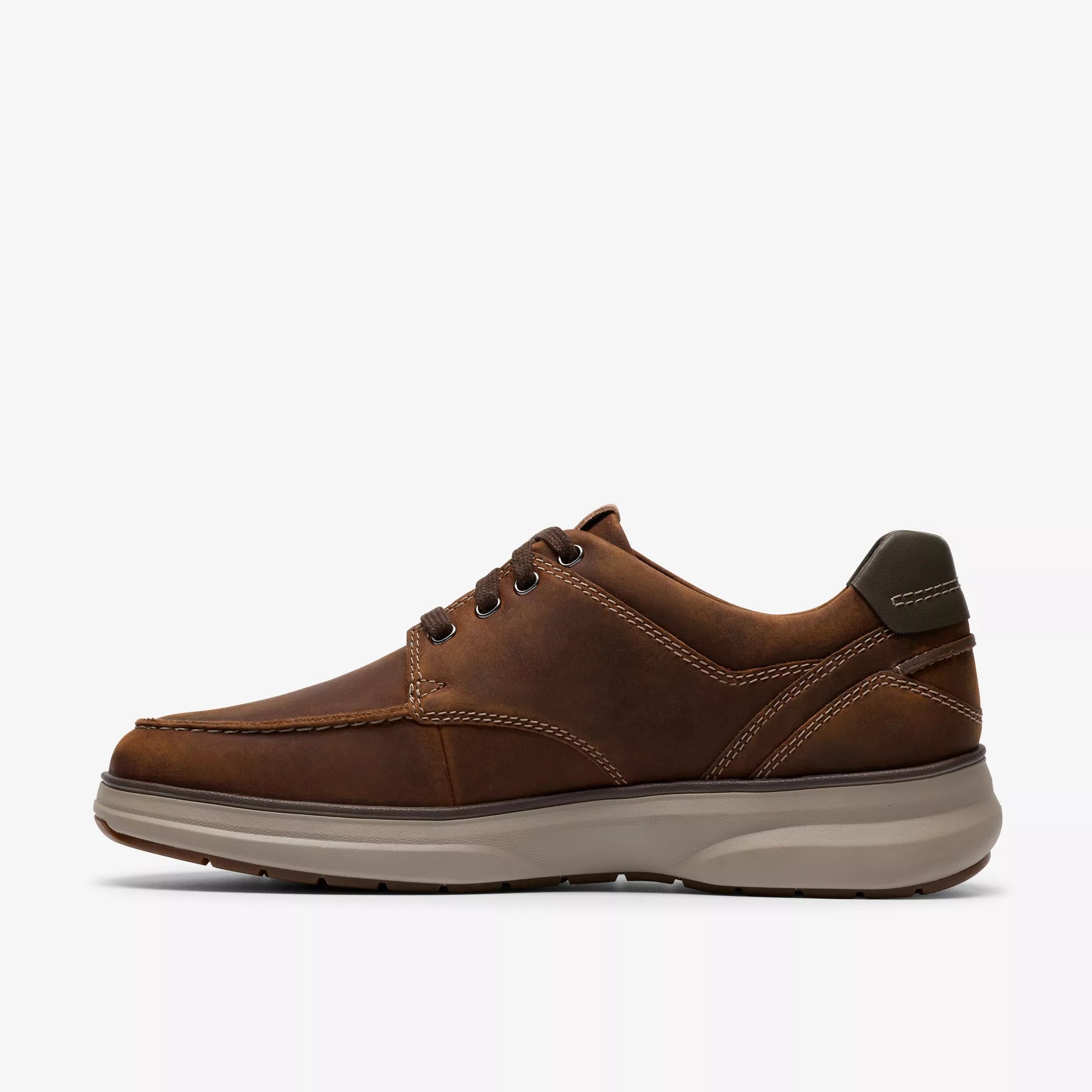 Introducing Mullan Moc – the ultimate comfort-casual shoe built for everyday wear. This versatile profile features an accommodating silhouette and premium leather upper, showcasing classic Clarks craftsmanship. With a contoured EVA footbed and lightweight EVA midsole, it delivers underfoot ease all day, making it a staple for any wardrobe.