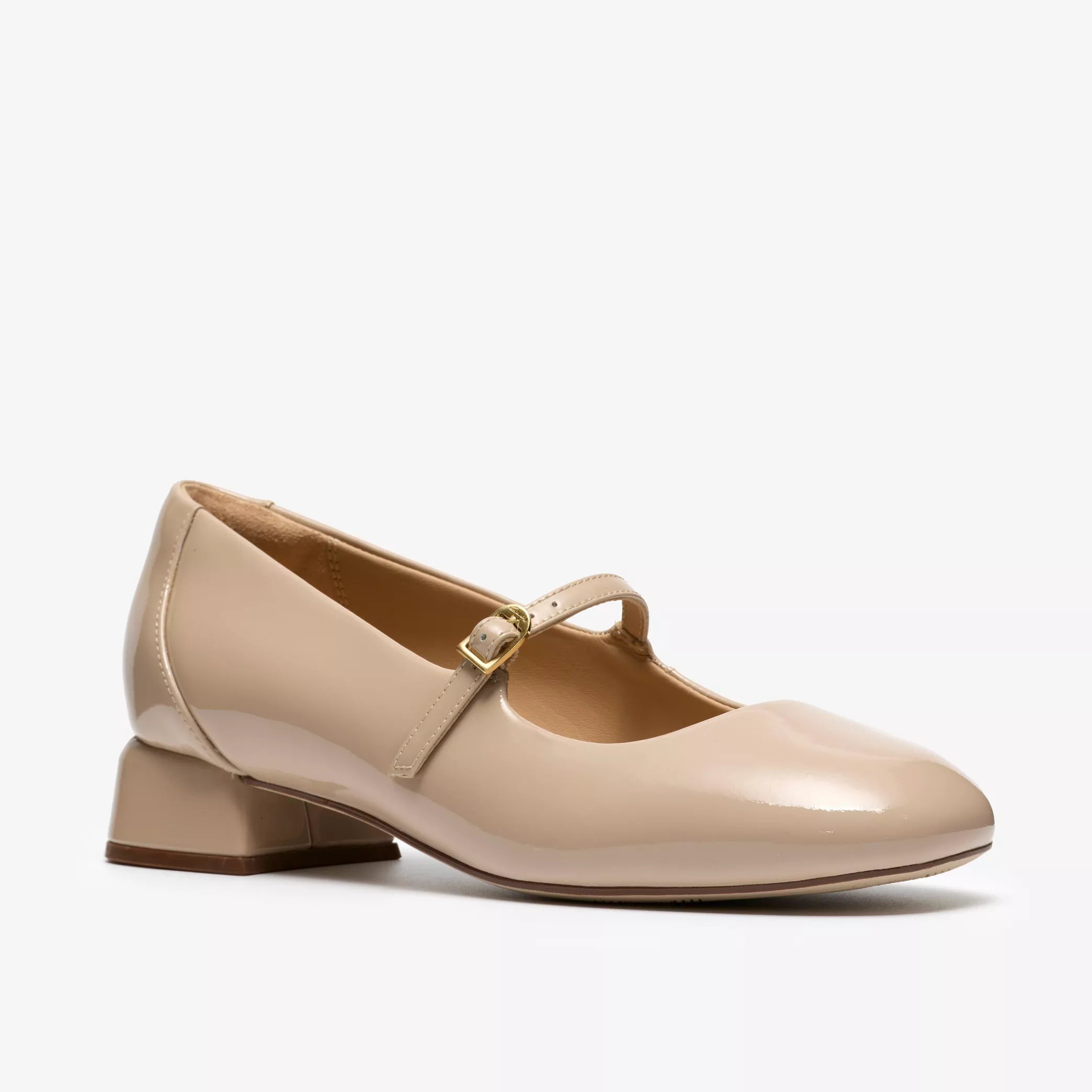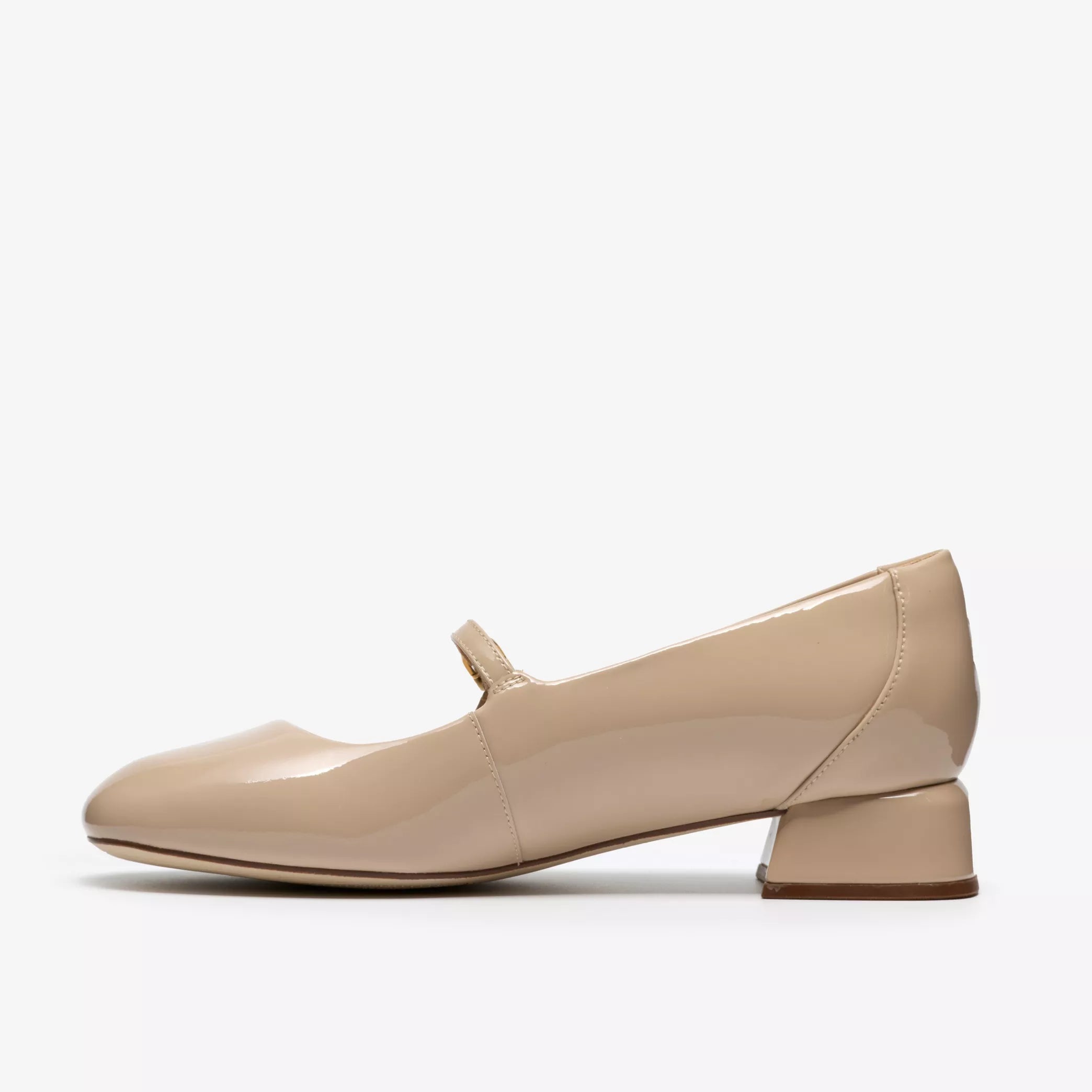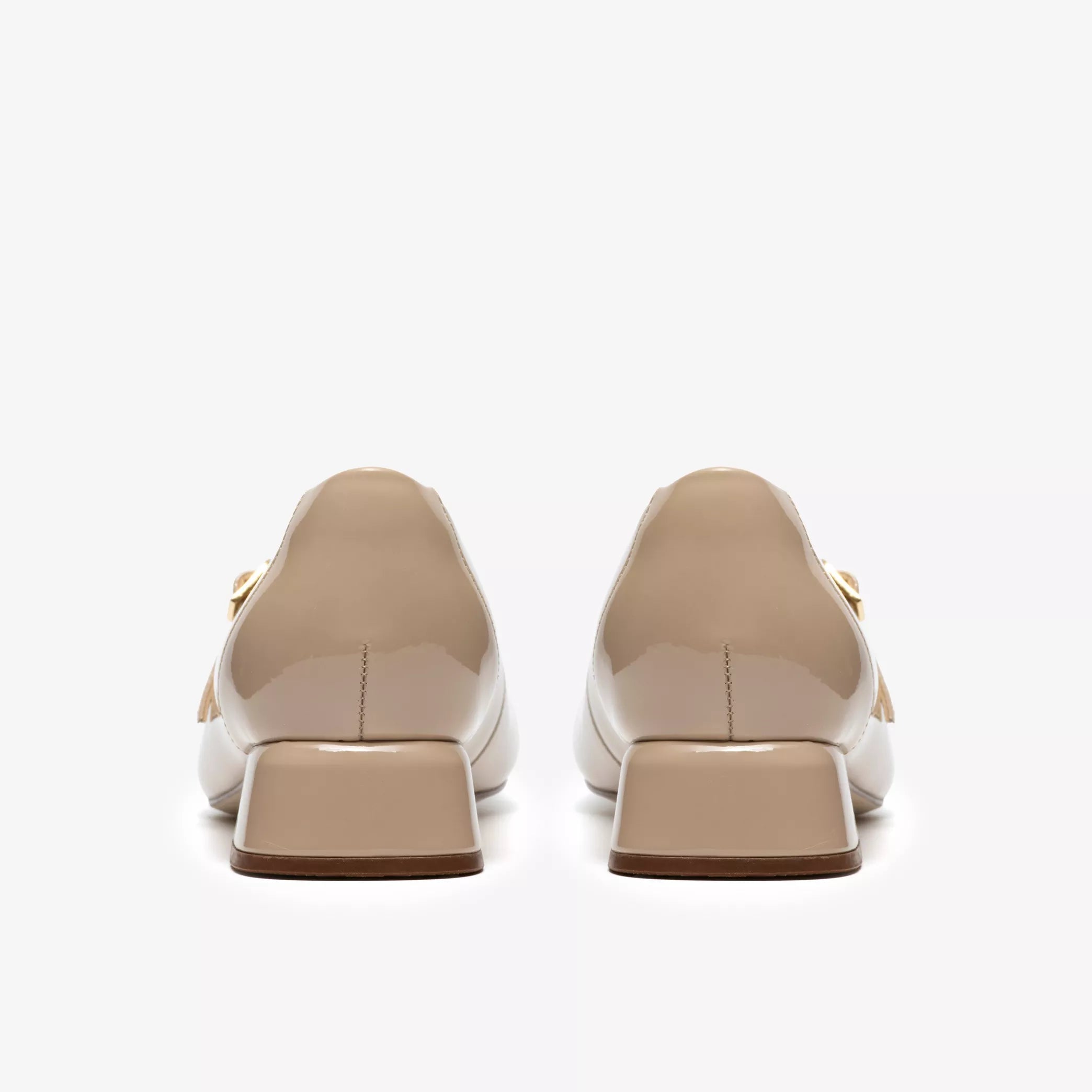 - Premium beige patent leather upper