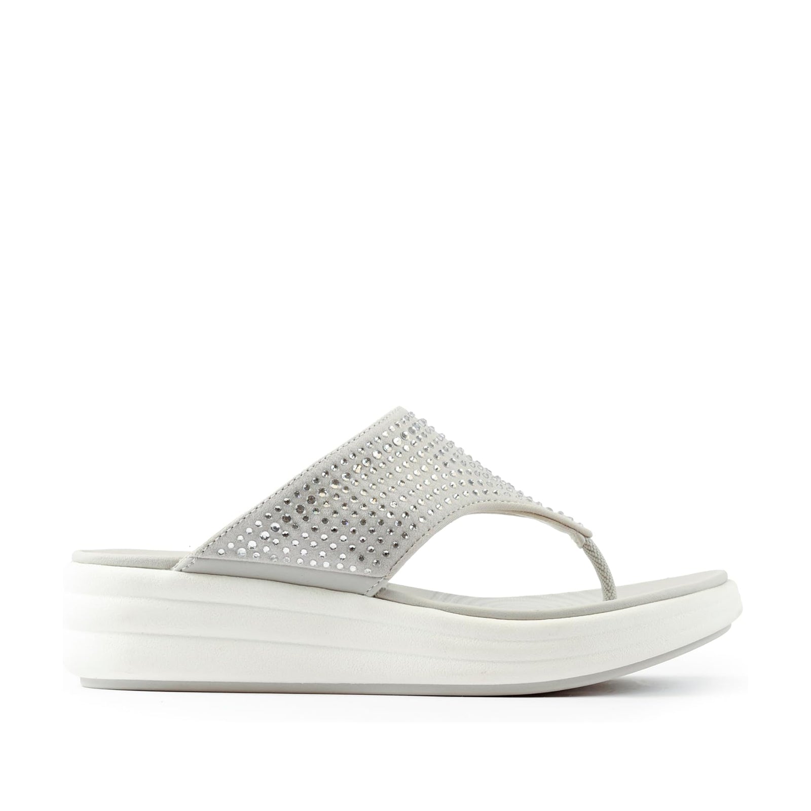 With all the ease of a flip flop but enhanced with elevation, Clarks Cloudsteppers Drift Jaunt is a jewel-embellished day-to-night toe post sandal that spotlights comfort.