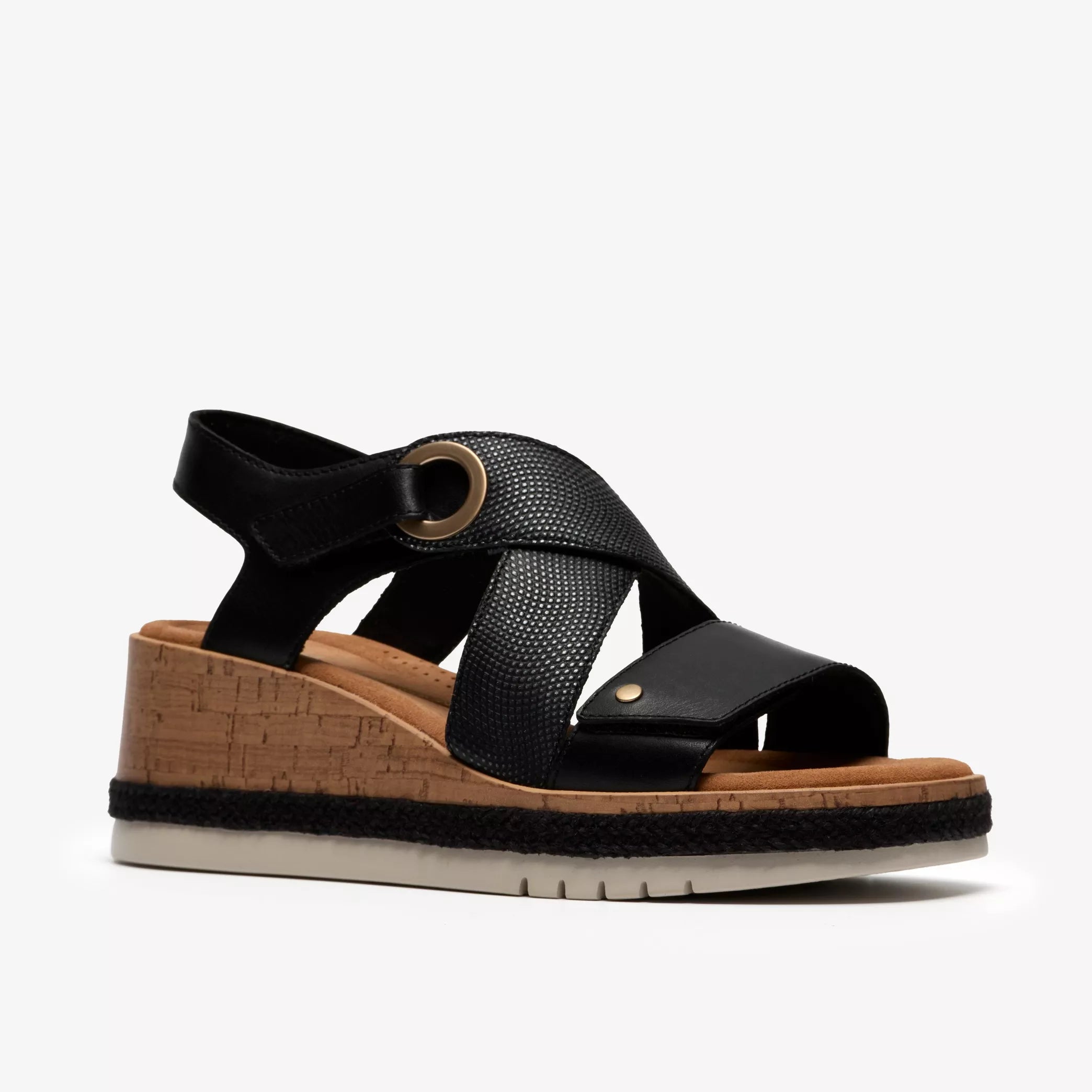 • Wedge heel with jute finish lends a crafted look